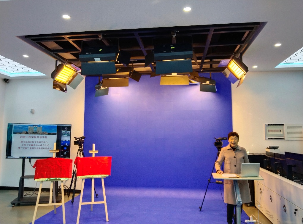 11月25日下午,beat365外语学院跨文化和比较文学研究中心、工程·文化翻译研究中心揭牌仪式在西校区外语学院融媒体4K虚拟情景语音室举行。揭牌仪式采取线上线下相结合的形式进行,副校长贺金凤出席会议,社科处王晓俊,外语学院领导班子、学院学术委员会全体成员及部分师生代表参加线下揭牌仪式。