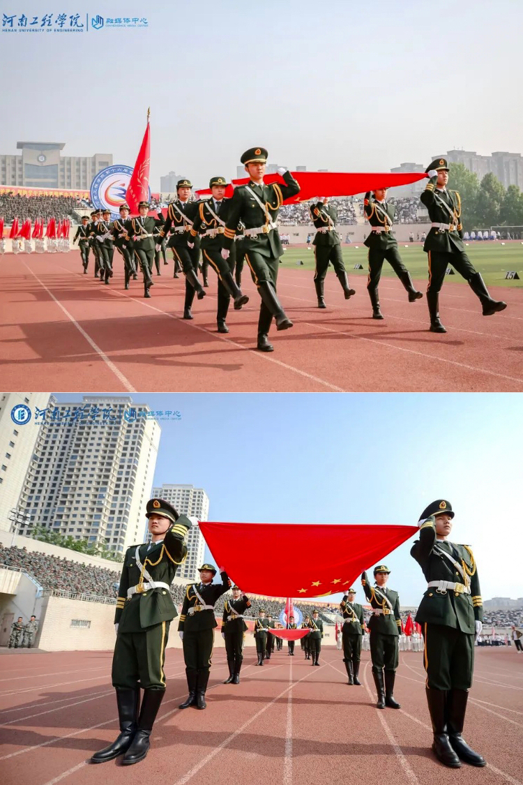 伴随着激昂的运动员进行曲,国旗方阵、各学院代表队、教工和裁判员代表队等20多个方阵迈着矫健的步伐,喊着嘹亮的口号,依次步入会场,充分展示了学校师生员工良好的精神风貌。运动会在国歌声中伴随着庄严的升国旗仪式拉开帷幕。
