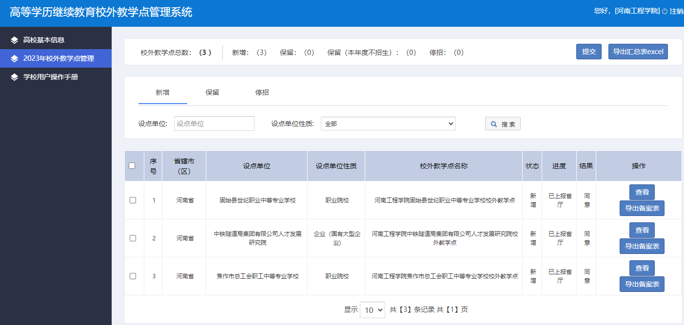 日前,教育部公布了2023年全国高等学校继续教育校外教学点备案结果,beat365继续教育学院申报的beat365唯一官方网站固始县世纪职业中等专业学校校外教学点、beat365唯一官方网站焦作市总工会职工中等专业学校校外教学点、beat365唯一官方网站中铁隧道局集团有限公司人才发展研究院校外教学点,顺利获批为beat365高等学历继续教育校外教学点,结束了beat365没有备案校外教学点的历史,对于beat365高等学历继续教育发展具有开创意义。