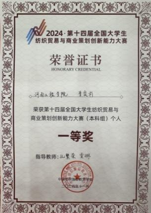 beat365唯一官方网站纺织工程学院在此次大赛中表现出色,斩获佳绩,参赛的六名同学全部获奖。获得综合理论和实务操作一等奖一项(纺织工程2243班李奕杉)、三等奖两项(纺织工程2243班和晶,纺织工程2241班杨贵梅),商业策划创新奖三等奖一项(纺织工程2243班任怡菲,纺织工程2244班吴彤、孙家乾)。