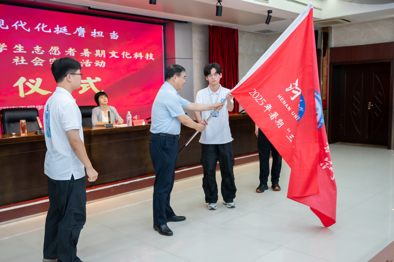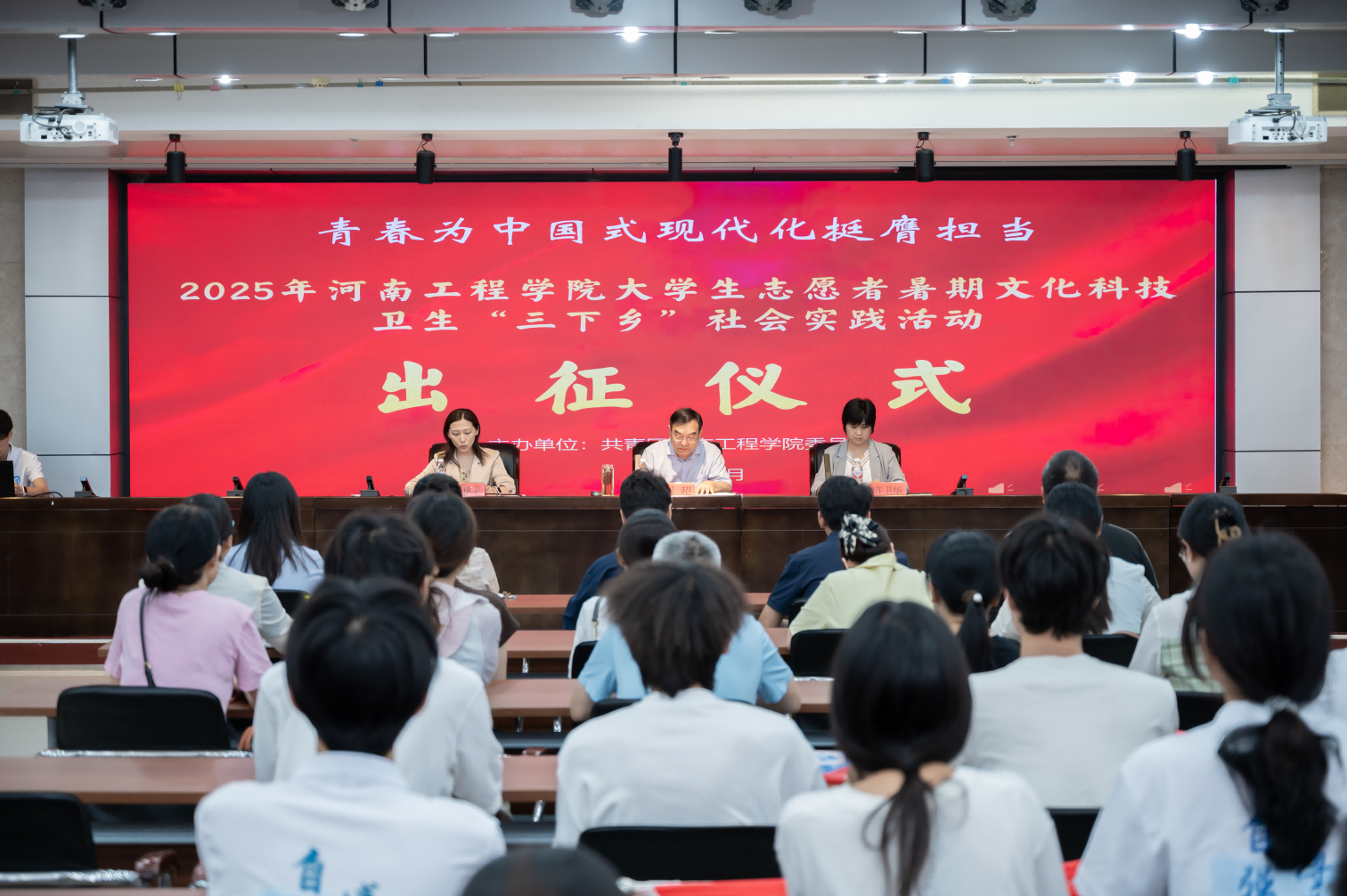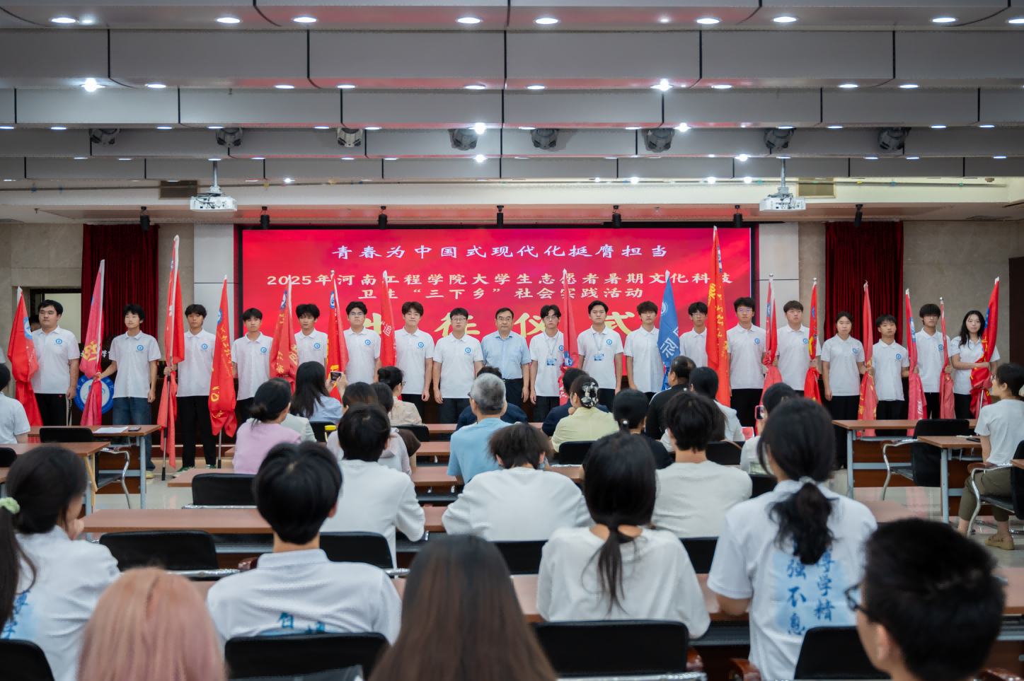 出征仪式在庄严的国歌中拉开帷幕。会上,校团委书记许卫华宣读了《关于开展2025年beat365唯一官方网站大学生志愿者暑期文化科技卫生“三下乡”社会实践活动的通知》,并从整体工作安排、文件解读和工作要求三个方面做了详细介绍。