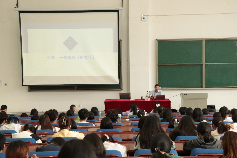 张宝明教授以《“公同担任”:精神股份制打造的“金字招牌”—一代名刊<新青年>的聚散离合》为题,从一代名刊《新青年》、一人主撰的前世、共同担任的今生、精神股份的力量、从独白到复调的启示等五个方面阐述了《新青年》背后不为人知的故事。通过大量史料梳理了《新青年》发展的历史脉络,介绍其从创刊初期的艰难经营到辉煌时期的月销过万,再到最后同仁分裂彻底休刊的抛物线式发展。张宝明教授认为,思想史研究要立足文本,通过文本反映思想变化。《新青年》在中国20世纪报刊史、思想史上具有重要地位,是观察20世纪思想变动的重要文本,杂志同仁在中华民族伟大复兴目标上高度一致,体现了一代知识分子的家国情怀和使命担当。张宝明教授还希望学生以问题意识作为一切历史研究的首要前提,着力培养家国情怀,增强爱国意识,树立国际视野。