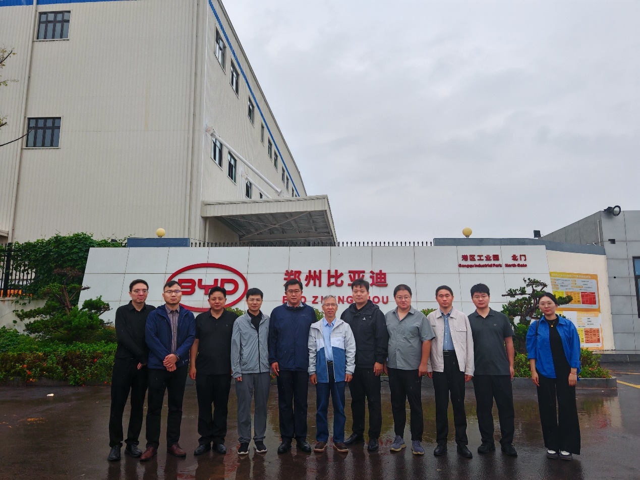 随后,调研组参观了郑州比亚迪弗迪电池工厂,了解了企业发展状况、产品开发与市场情况,并深入车间现场,详细考察了自动化生产线、产品生产工艺、质量控制、智能控制系统等,与企业生产技术人员讨论了生产中遇到的问题与解决途径,研讨了未来在生产管理、技术升级等方面的发展趋向。