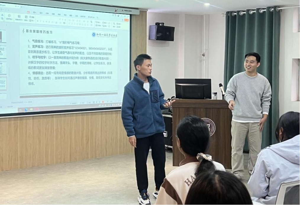 为丰富学生校园文化生活,提升审美与人文素养,10月16日下午,知行“一站式”学生社区在“知行·初心讲演厅”成功举办“‘麦霸’是怎样炼成的——声乐艺术与基本演唱技巧”美育沙龙。活动由住楼辅导员张石磊担任主讲,吸引了众多同学积极参与。