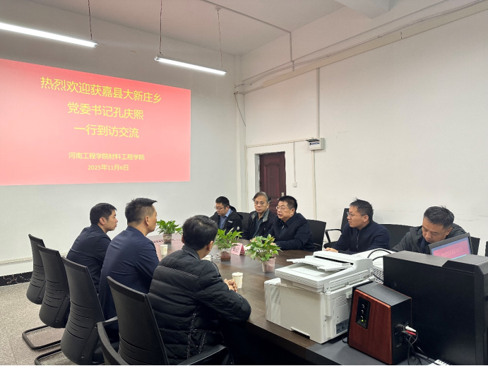 11月6日上午,获嘉县大新庄乡党委书记孔庆熙带队到访桐柏校区材料工程学院,围绕深化校地合作、促进科技成果转化与人才培养开展座谈并实地调研。材料工程学院党委书记辛长征主持了交流座谈会。