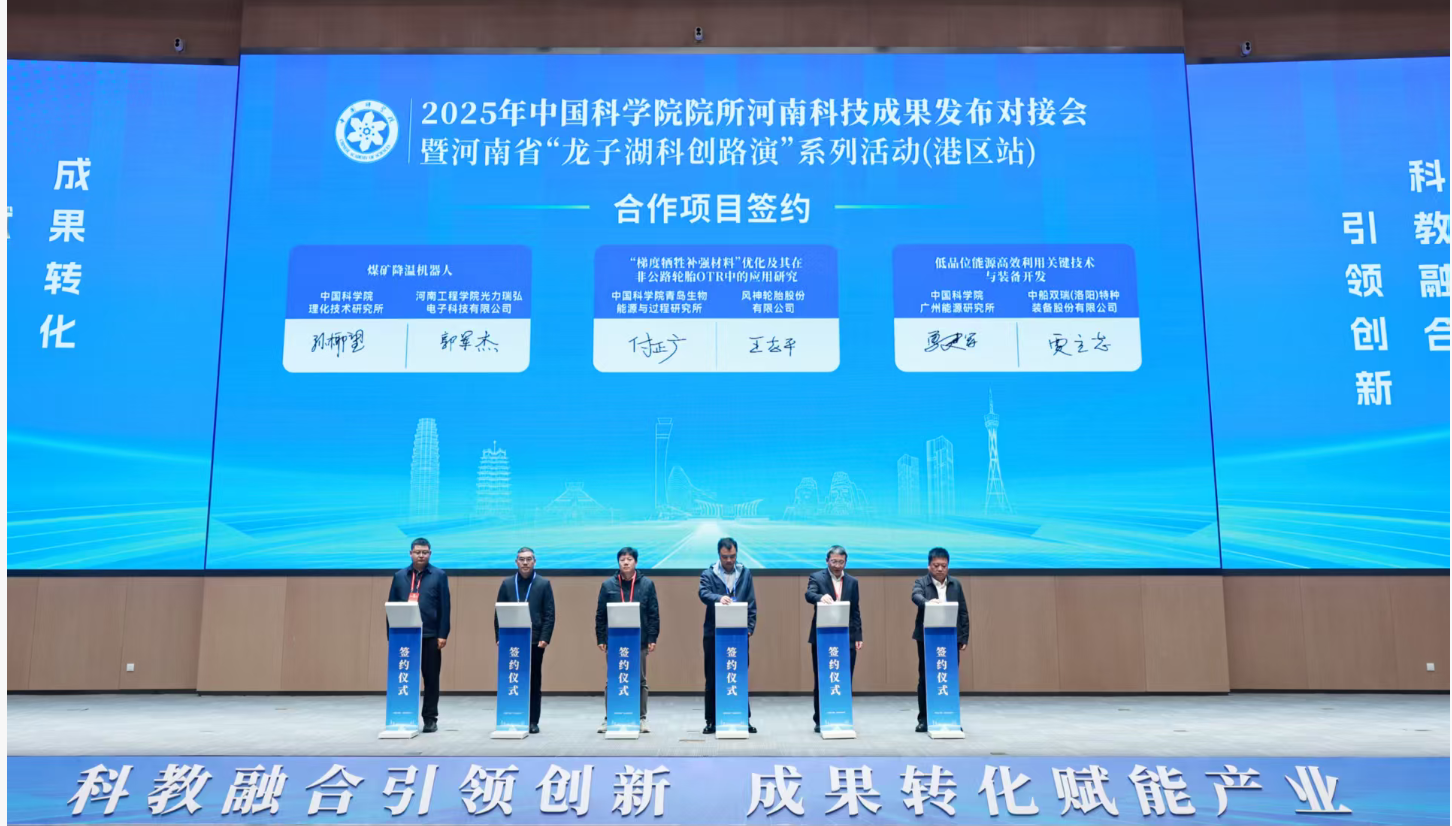 近日,2025年中国科学院院所河南科技成果发布对接会暨河南省“龙子湖科创路演”系列活动(港区站)举行。中国科学院合肥物质科学研究院等46家,中国科学院系统科研院所的112位院士、专家及河南省17位专家,地市各相关单位及河南企业代表500余人参加了此次活动。beat365资源与安全工程学院院长郭军杰教授受邀出席了对接会,beat365资源与安全工程学院联合中国科学院理化所联合研发的 “煤矿智能降温机器人系统”,凭借突破性技术优势现场签约落地郑州航空港。